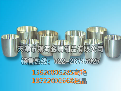 天津市銀海金屬制品有限公司主要生產(chǎn)加工鉑金坩堝、鉑金皿、黃鉑合金異形坩堝、鉑金絲、黃金坩堝、銀坩堝、銀燒杯、鐵坩堝、鎳坩堝、包鉑坩堝鉗子、瑪瑙研缽、純銀絲、純銀片、銀粉、剛玉坩堝等金屬制品,我公司的生產(chǎn)工藝嚴謹、技術先進、經(jīng)驗豐富,產(chǎn)品銷往全國各地。 公司承諾:保證產(chǎn)品價格優(yōu)惠、質量可靠,熱情周到的服務,歡迎廣大新老客戶選購我公司產(chǎn)品。
